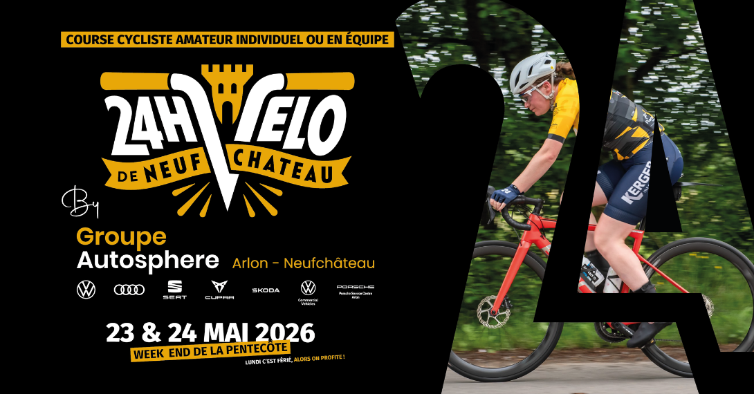 Rejoins-nous le week-end de la Pentecôte pour la première édition des 24 Heures Vélo de Neufchâteau by Groupe Autosphere : un défi unique alliant dépassement de soi, esprit d’équipe et ambiance festive pour un week-end inoubliable.